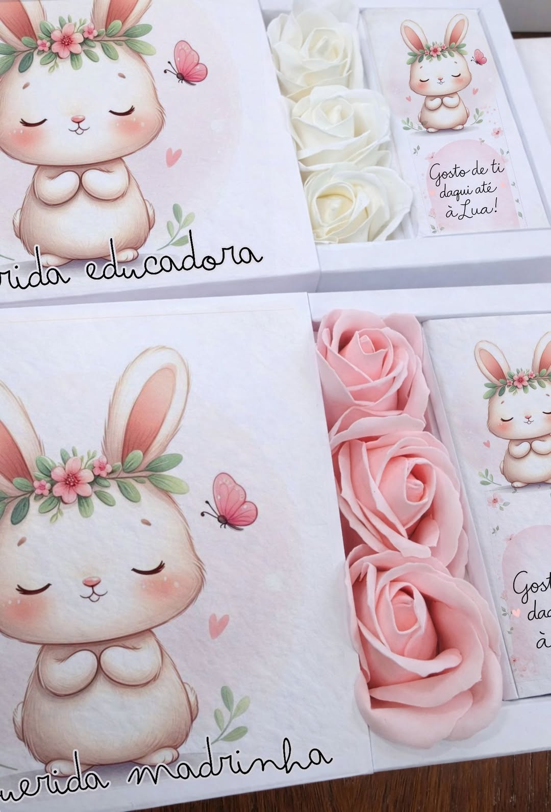Box com tablete de Chocolate e Rosas de Sabão Perfumado.